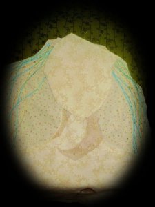 This little lady’s quilt is coming along fine! I have about 50% of the groundwork down. After the major pieces are sewn together, the real fun starts–embellishing! (Oh, I love to embellish!)