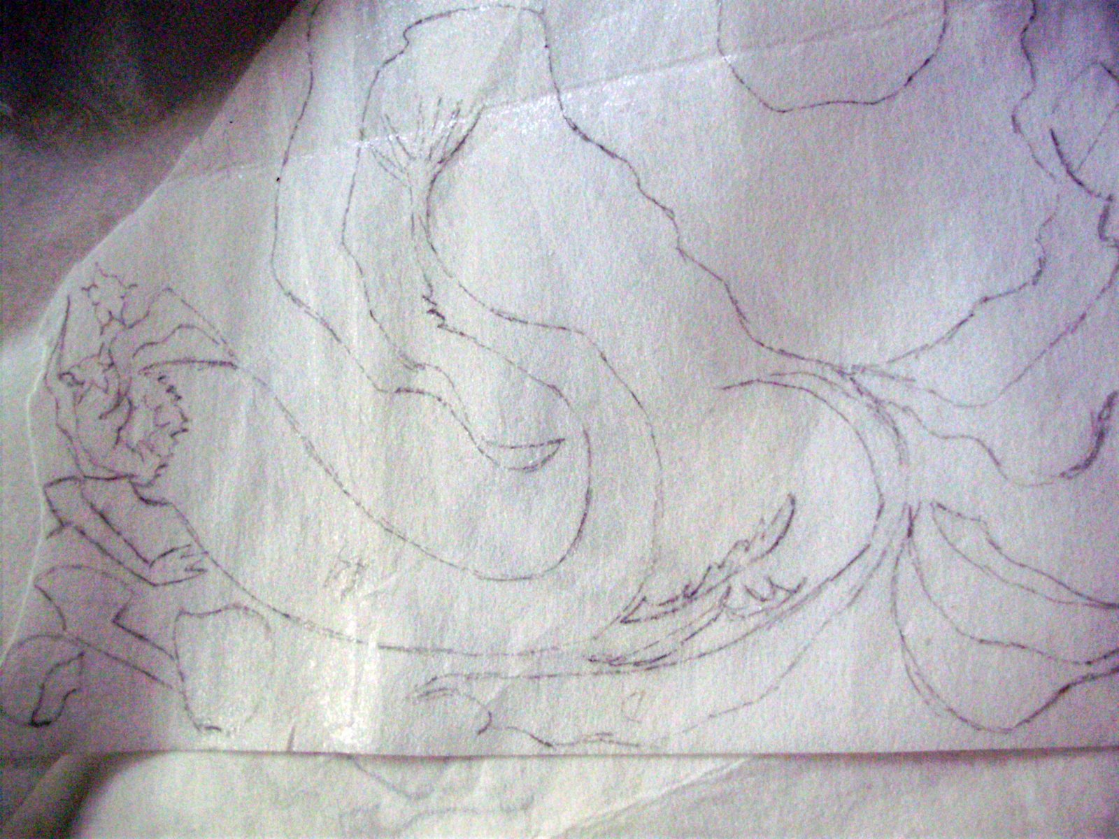 I traced my image on to interfacing (the mess you see above) and chose and washed my fabrics. Work should start later today–I’ll keep my camera close by!