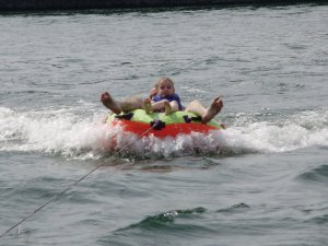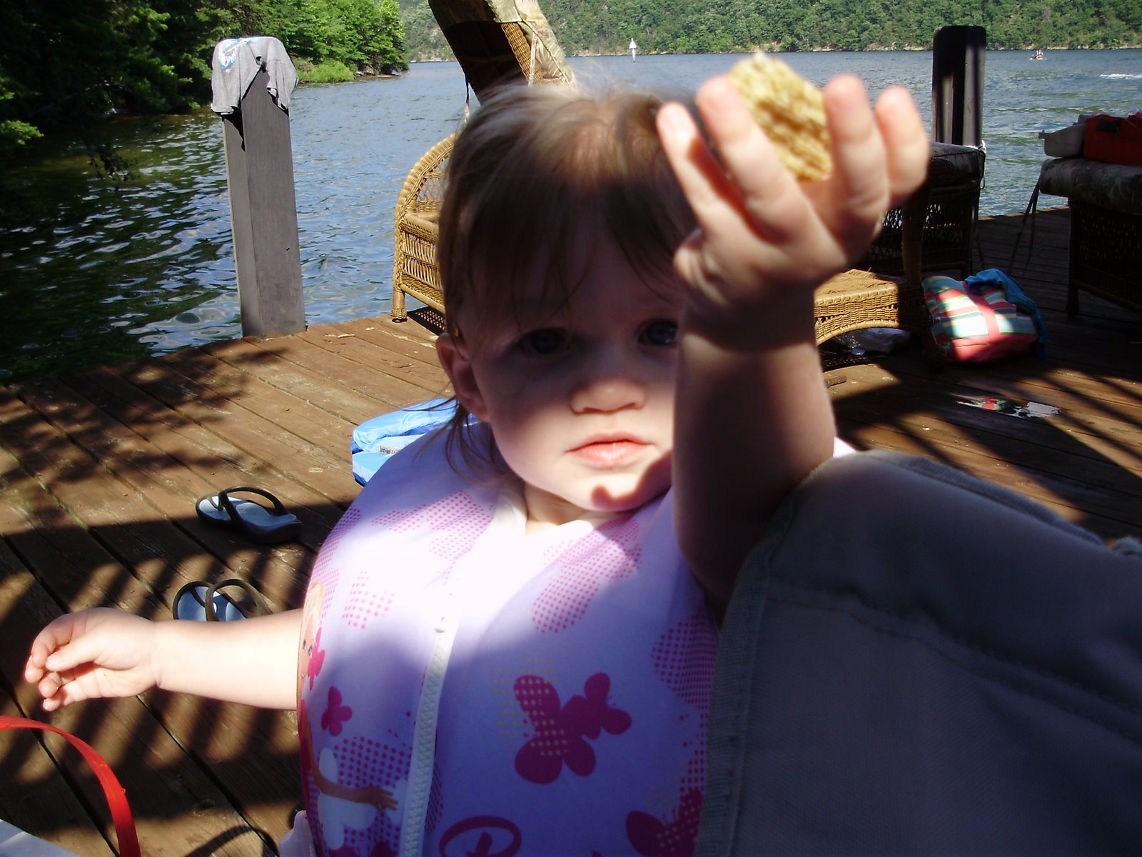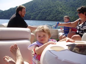 As I’ve mentioned before, we spent our nation’s birthday up at Smith Mountain Lake, Virginia, at my husband’s step mom’s sister’s house. (We just call her “Aunt Kate.”) She lives in a BEAUTIFUL house on a lake, and we are always excited to visit–Not just because she has a cool house and a private dock–she’s pretty cool, too!! 🙂