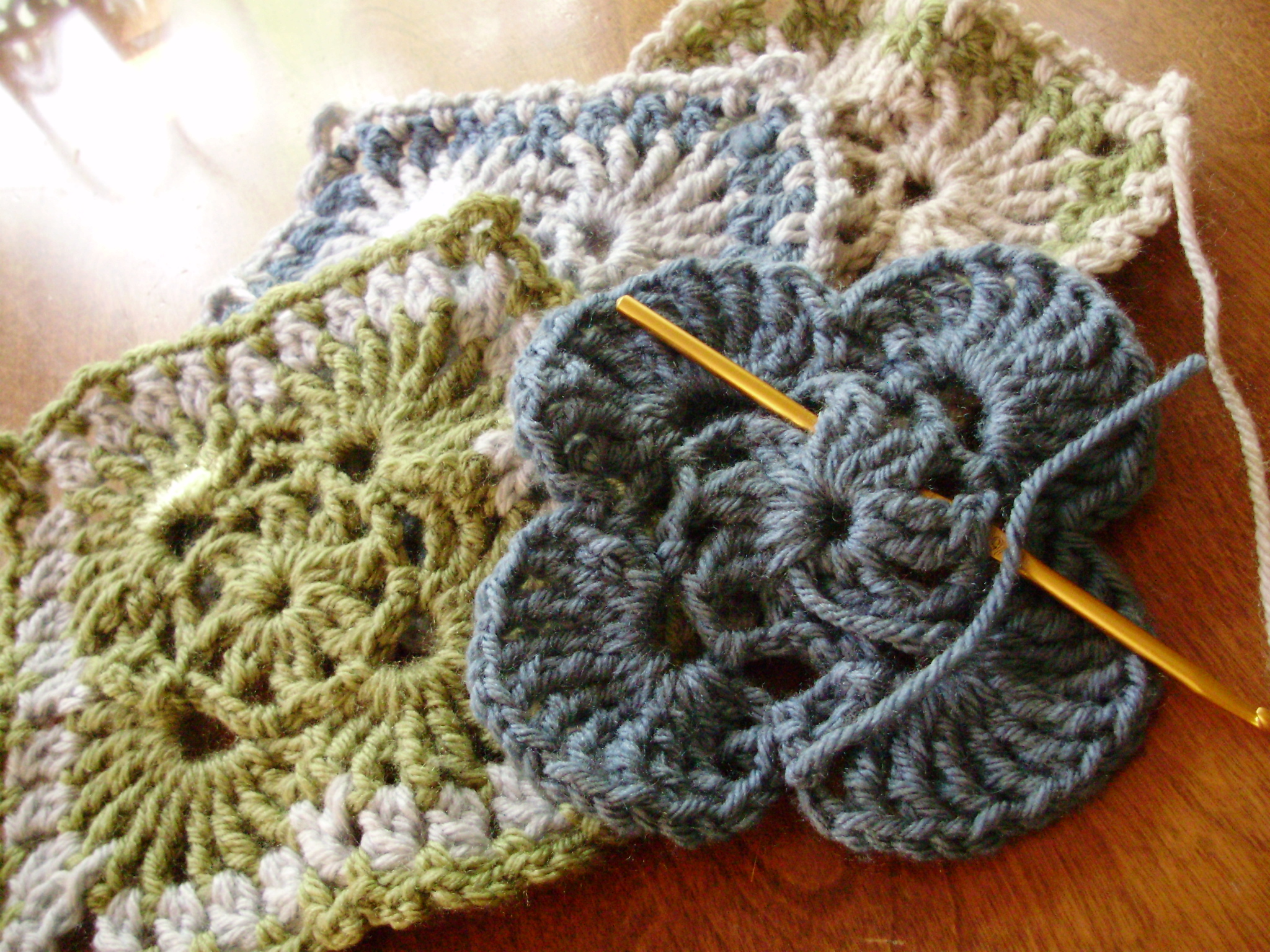 And am crocheting some granny squares, which will eventually be an blanket: