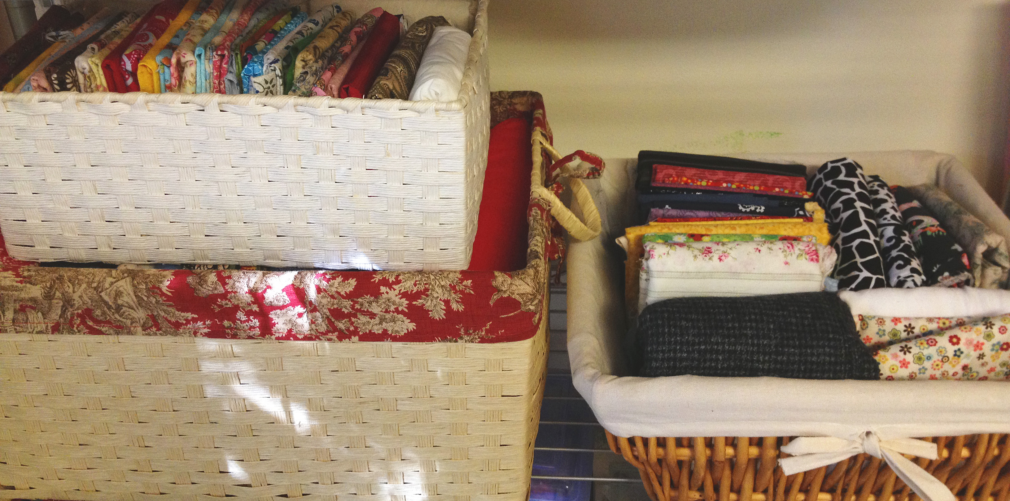 Nothing prettier than colorful, folded fabric in a basket.