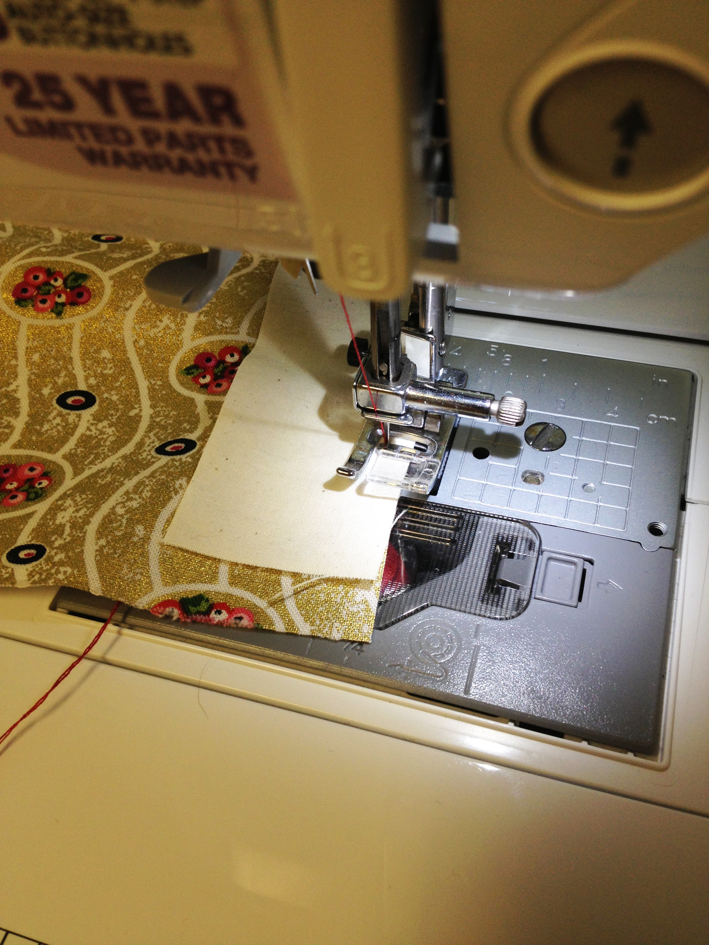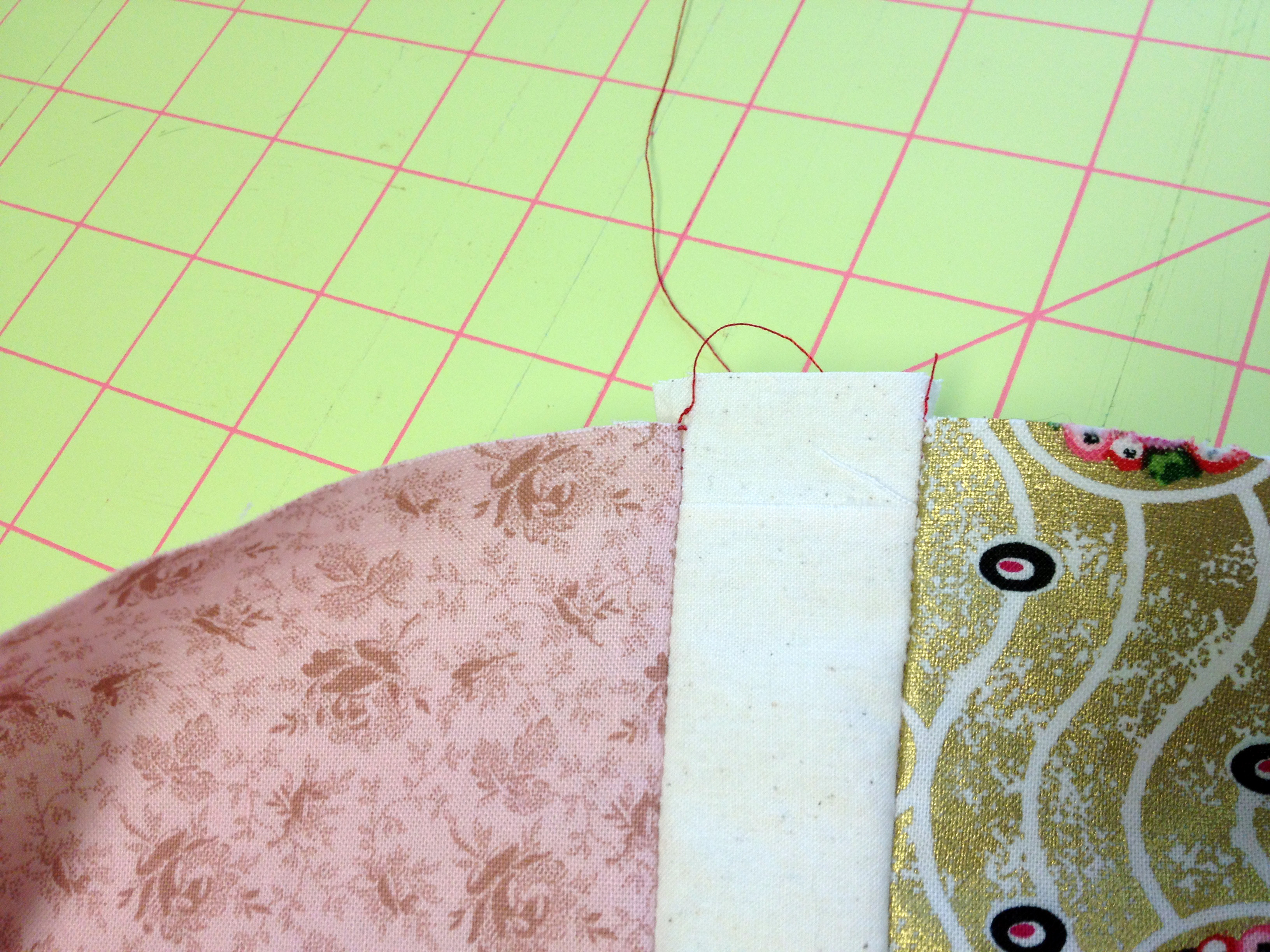 I was over halfway through sewing this sash on when I noticed my mistake. SO, I had to pull this off the machine, grab the seam ripper, and spent the next fifteen minutes removing the old sash and cutting a new one. And, it gets better.