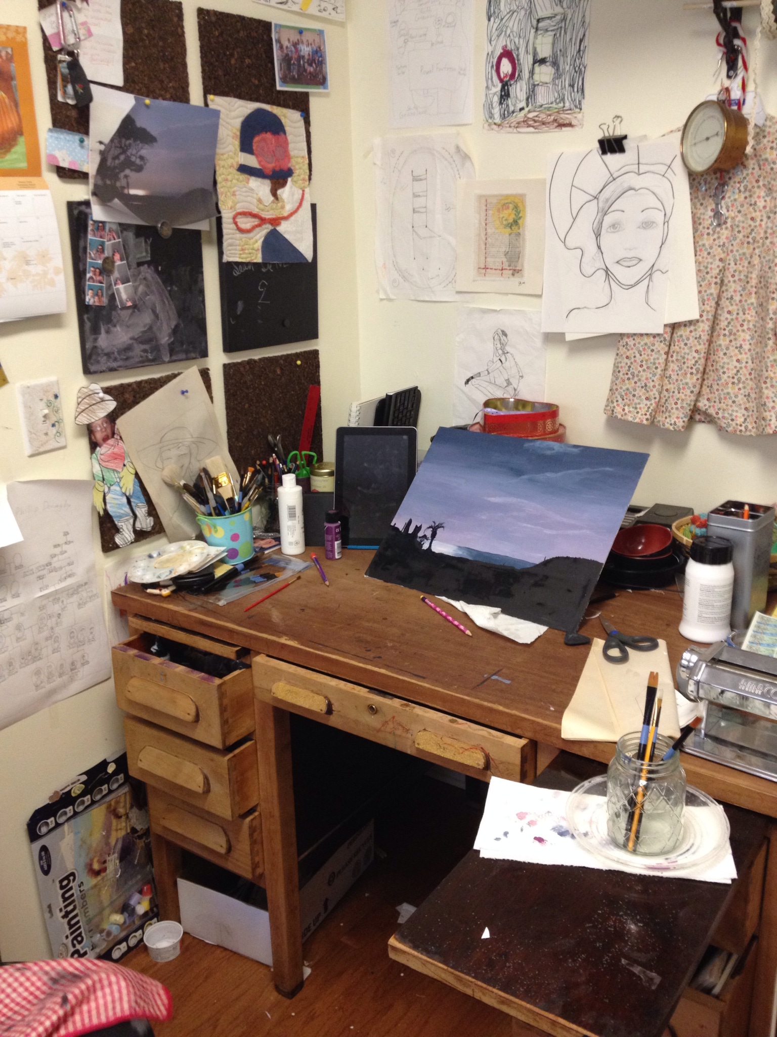 In addition to making those rug mugs, I’ve been doing a little knitting–but not much. What I’ve really been working on (besides the every day stuff I have to do to maintain my household while growing another human being inside of me) is painting. I finished one painting last week, and started another one this weekend. I forgot how much I enjoy painting. And, really, the only reason I picked up the paint brush was because I was feeling a little sad and needed some art therapy.