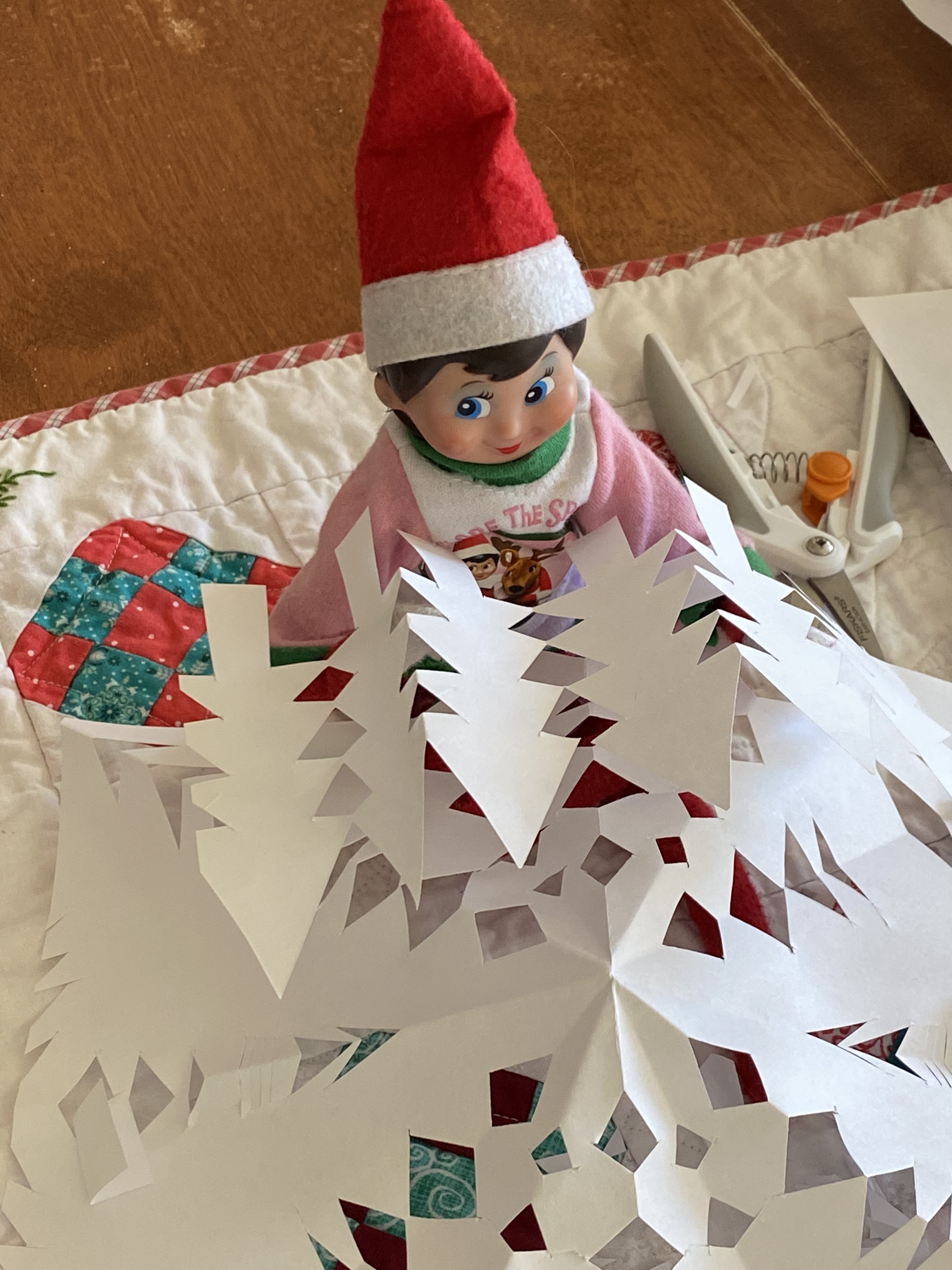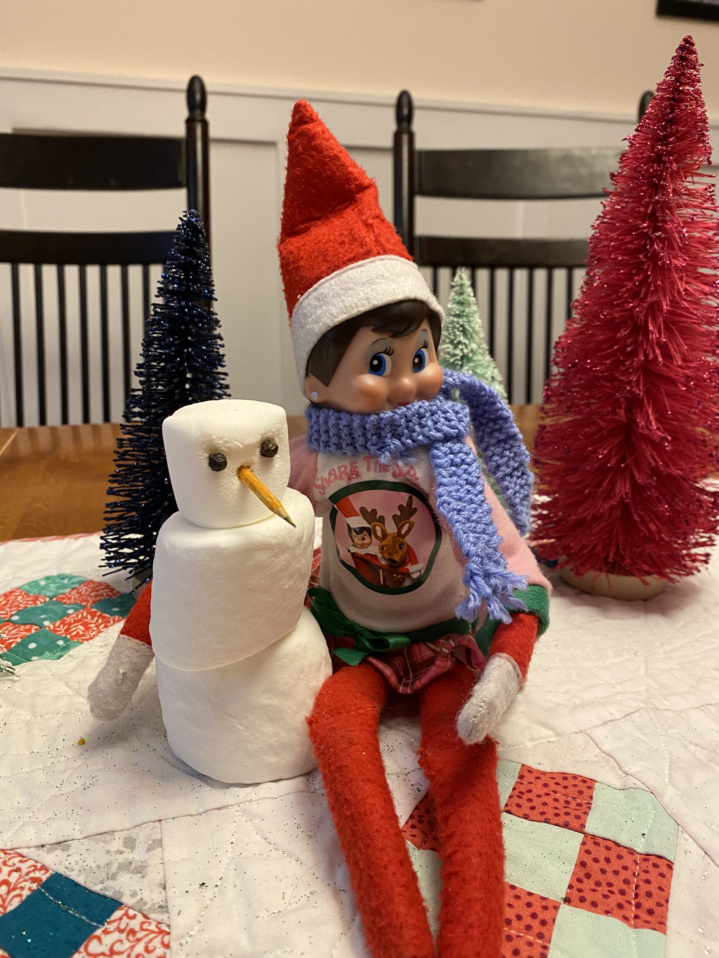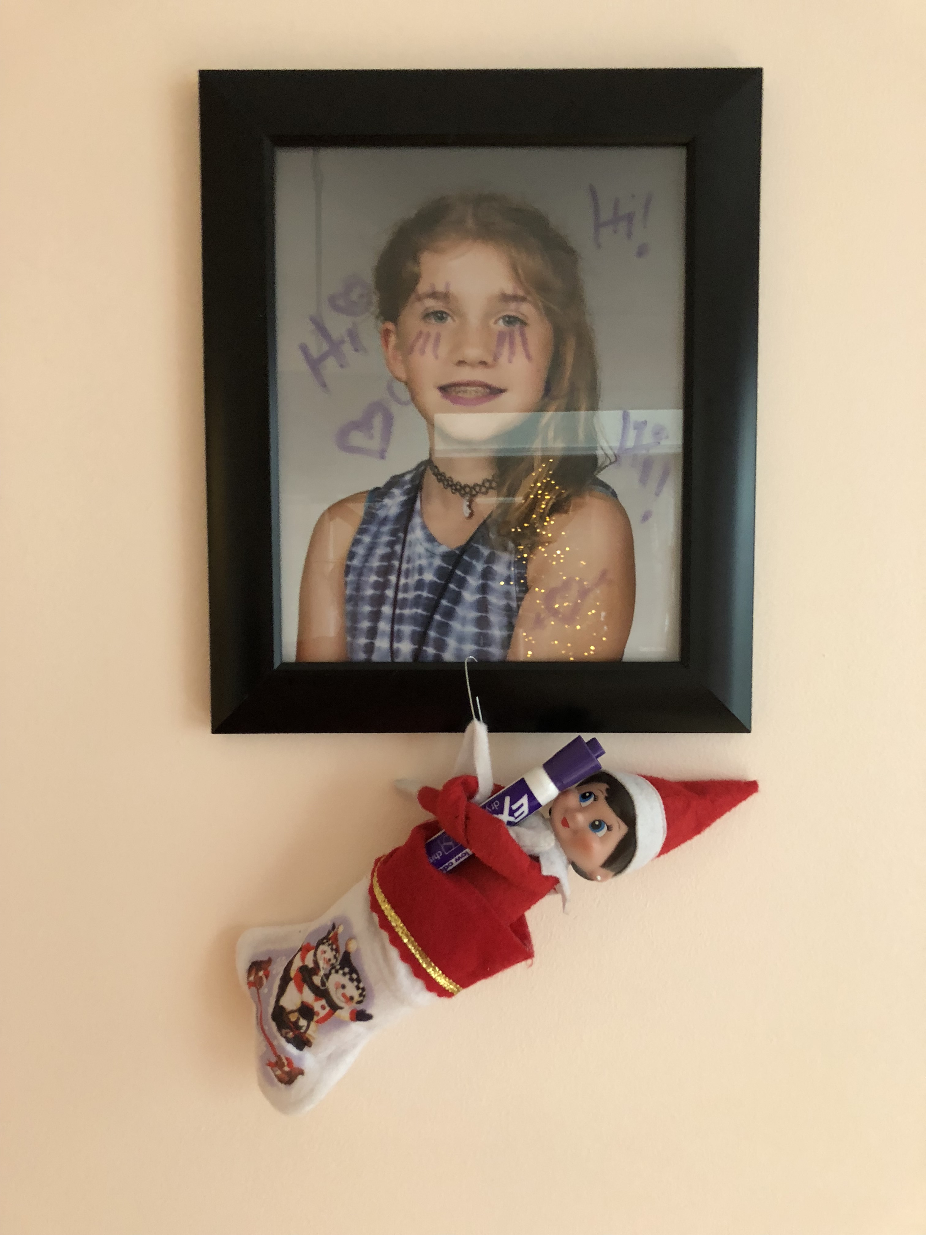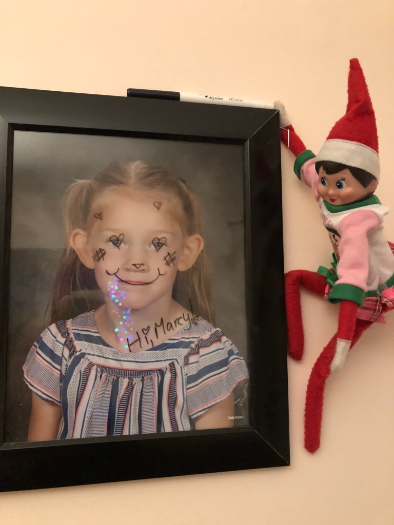 Okay…As you have seen, there will be repeats…you can keep it fresh, though, by putting a slight twist on tired old gently used ideas. For example, maybe your elf is decorating oranges instead of bananas? Maybe she, he, or they are drawing snowflakes on the glass windows with chalk marker? Just have fun with it.